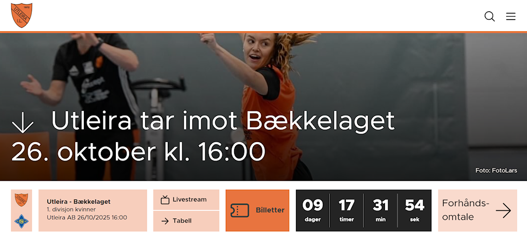 Sjekk ut deres nye nettside og bestill billetter til neste hjemmekamp, samt les om våre spillere og andre artikler. https://utleira.topphandball.no/